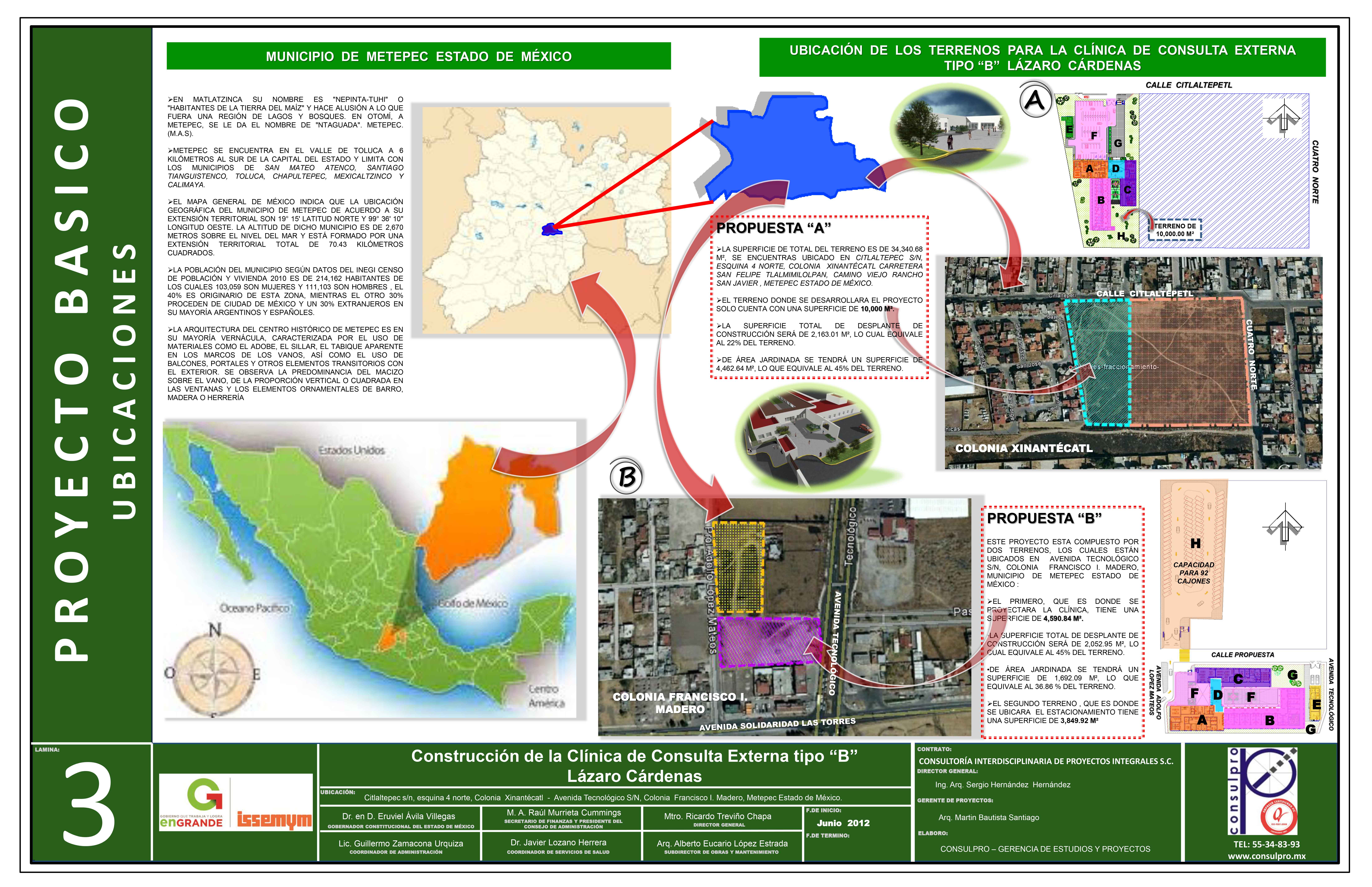 Láminas ejecutivas del Proyecto Ejecutivo Integral Unidad de Atención a Derechohabientes ISSEMYM