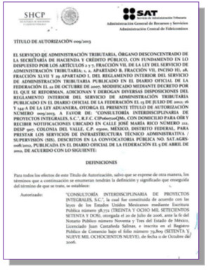Servicios: Significan, en términos del artículo 16 de la ley, los servicios objeto de este título de autorización, descritos en la convocatoria pública No. SAT.AGRS-008/2012, publicada en el diario oficial de la federación el 5 de abril de 2012:
