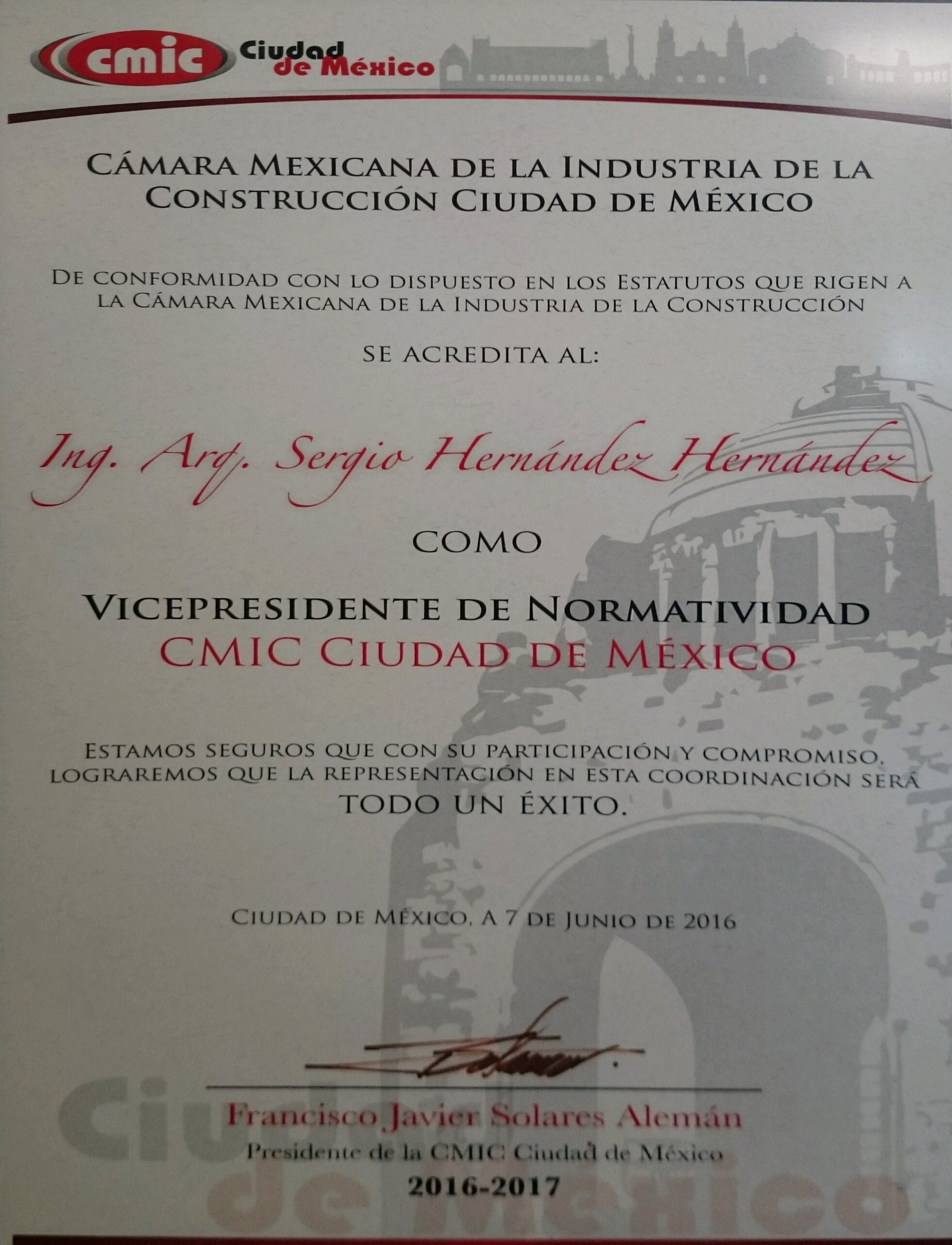 Acreditación vicepresidente de normatividad CMIC Ciudad de México