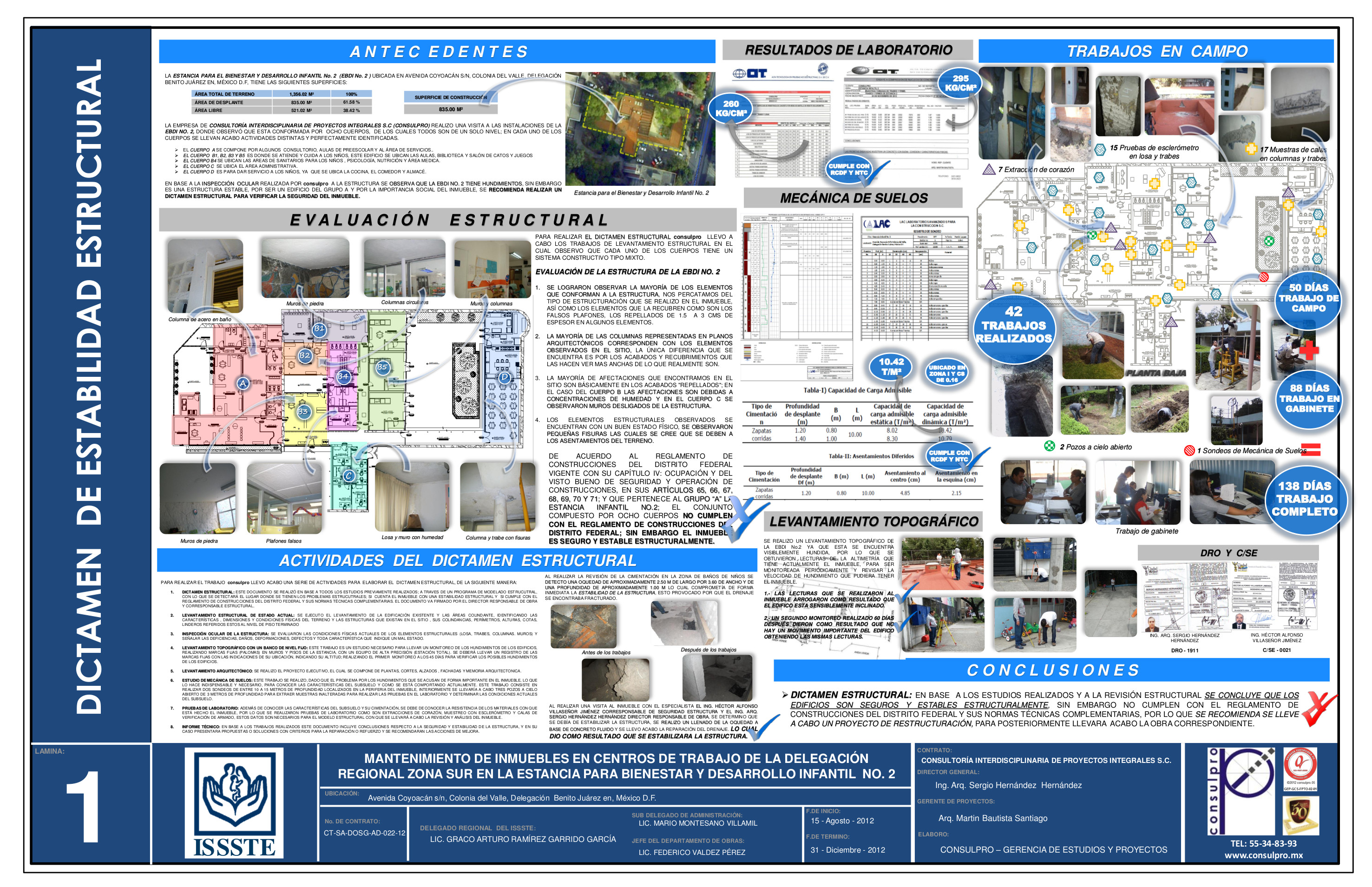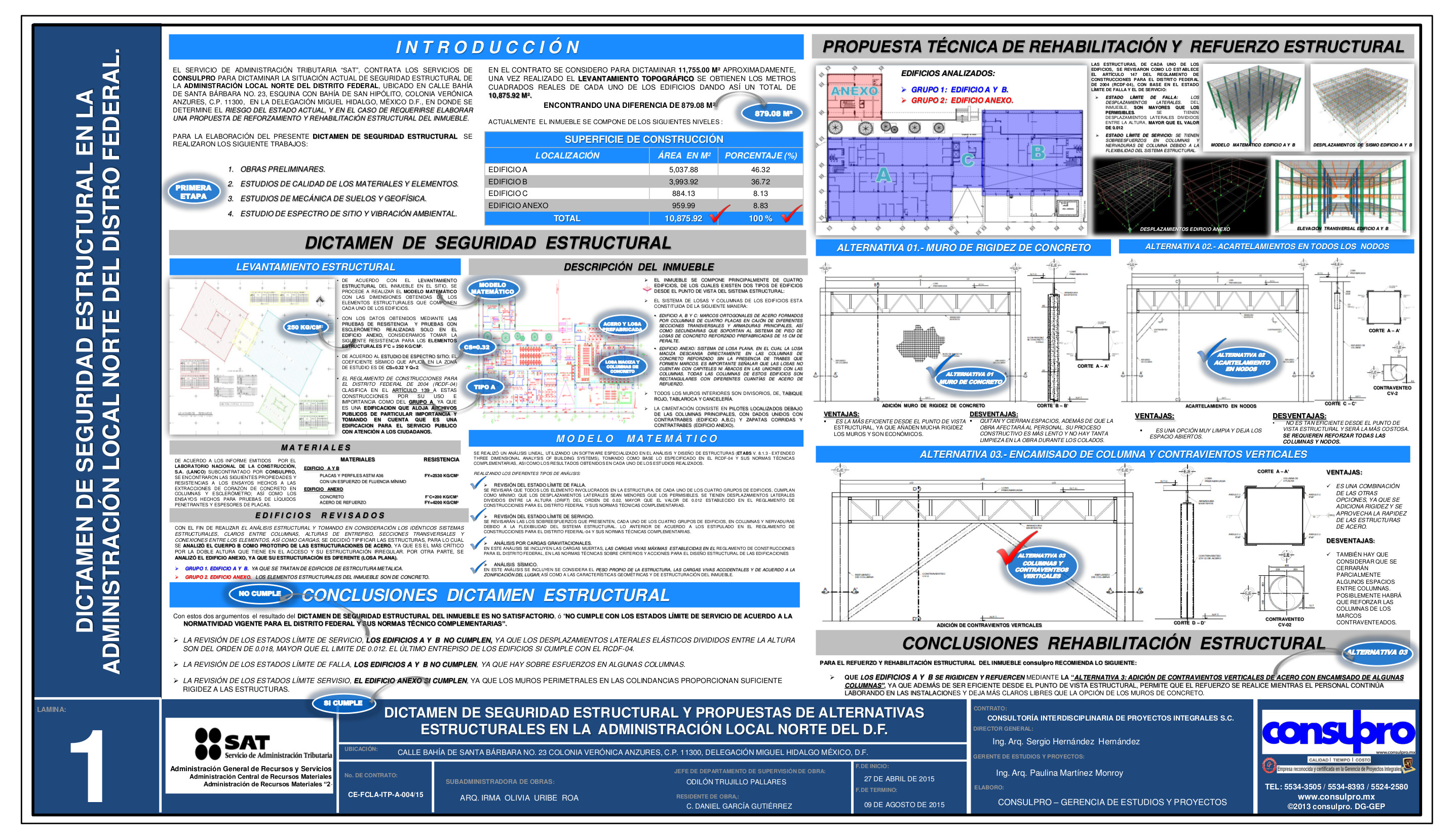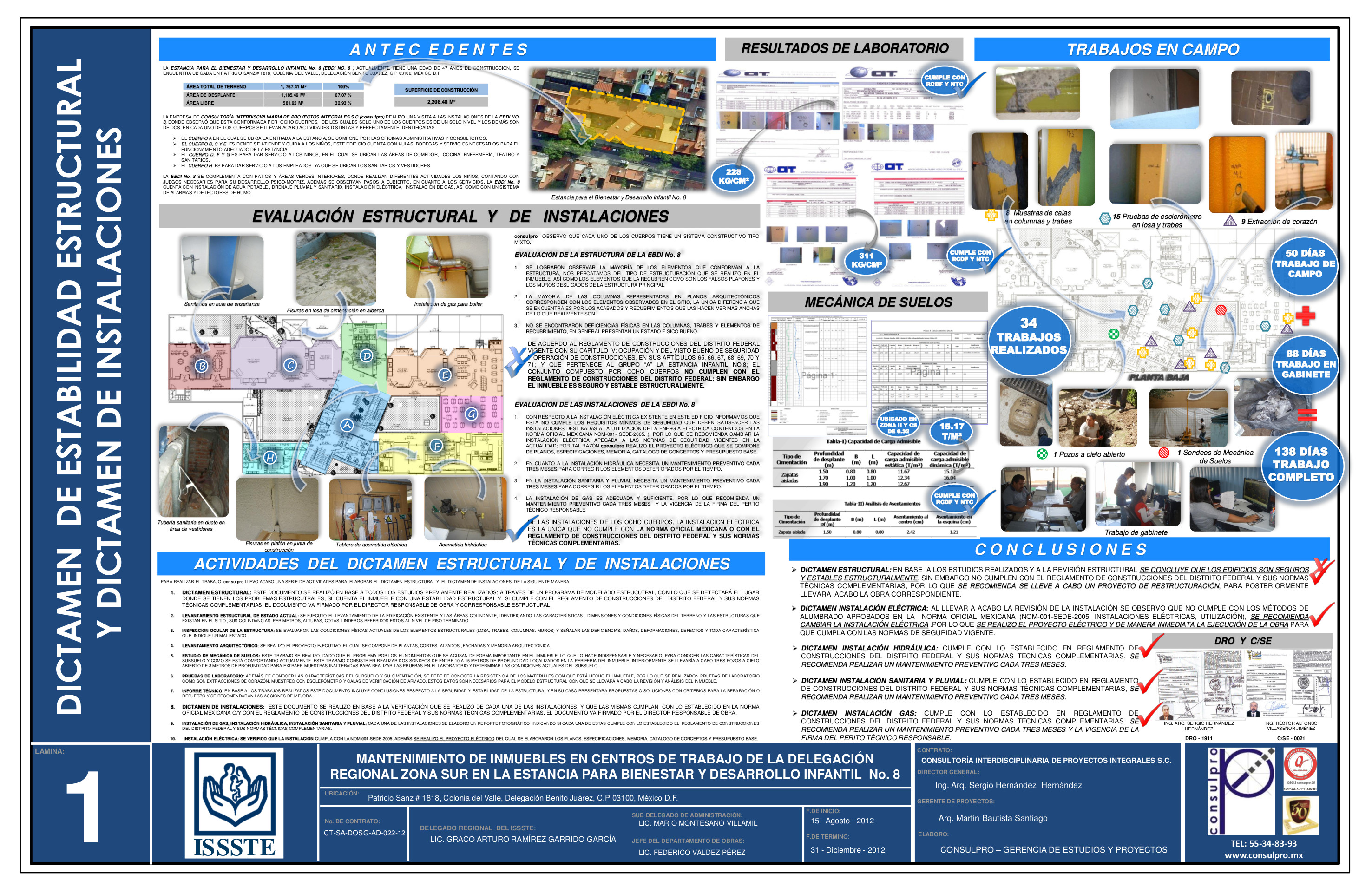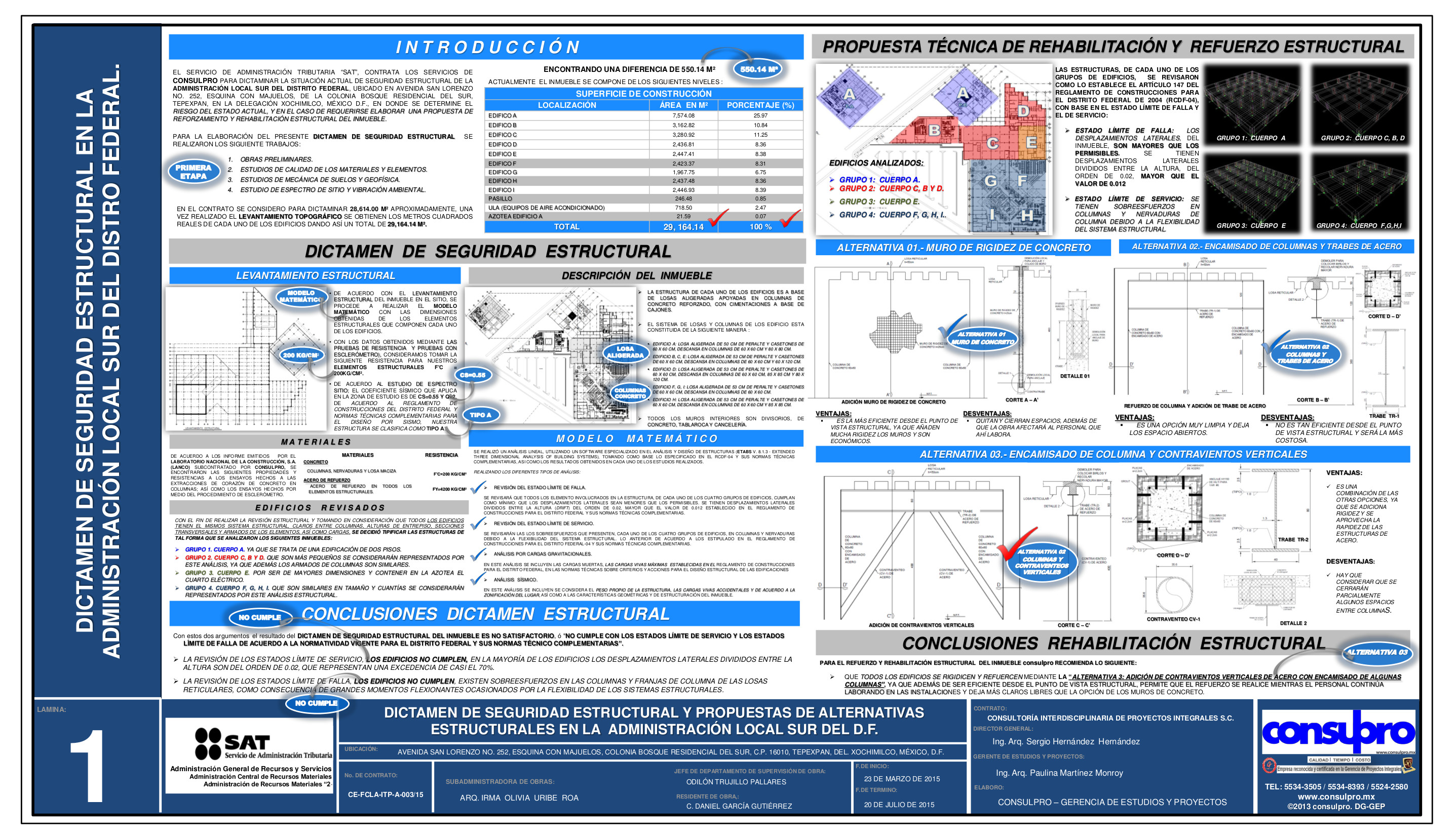 - De acuerdo a la inspección técnica y a la Revisión Estructural se llega a la conclusión que el inmueble "NO CUMPLE" con la estabilidad Estructural del edificio se procede a llevar a cabo el Dictamen de Estabilidad Estructural. consulpro ha establecido una metodología para llevar a cabo el Dictamen Estructural.